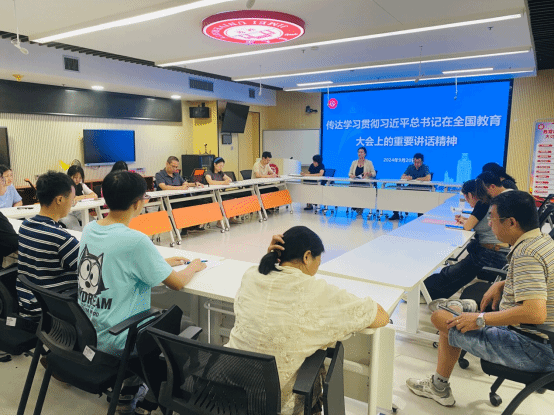 李雪在会上领学了习近平总书记在全国教育大会上的重要讲话精神和《中共中央 国务院关于弘扬教育家精神 加强新时代高素质专业化教师队伍建设的意见》精神。李雪结合本科教育教学水平评估工作和教务处业务特点对学习内容进行了深刻解读。她指出,要坚持以教育家精神铸魂强师,发挥教师发展中心作用,不断提高教师培训质量,为提升教师教育教学能力和整体素质提供良好的保障与服务环境;全体教务人员要切实抓好学校各项改革任务的贯彻落实,打开工作思路和格局,站在高素质、高能力、大思考的角度去完善和提升自己的业务质量,提高执行力,加强工作作风建设;要秉持仁爱之心,将教书和育人紧紧融合,处理好管理和教育间的关系,不断提高管理服务水平。李雪特别强调,教务处绝不是冷血的、冷漠的、麻木的,更不是高高挂起的,教务处全体人员应全心全意为师生解决问题,真正成为高素质、专业化的教育教学管理队伍。