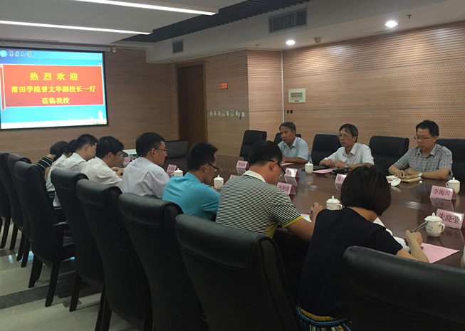 9月26日,莆田学院副校长曾文华一行9人到我校调研审核评估、教学质量监控等工作情况。副校长曹敏杰、教务处相关人员与来宾进行了座谈。 曹敏杰代表学校对曾文华一行来访表示欢迎,并介绍了我校审核评估的基本情况。双方分别就审核评估准备、注意事项、支撑材料整理、自评报告撰写和教学质量监控等方面进行了深入交流。 曾文华介绍了莆田学院审核评估准备工作,对我校提供的经验表示感谢,希望今后能够不断加强两校之间的交流合作。