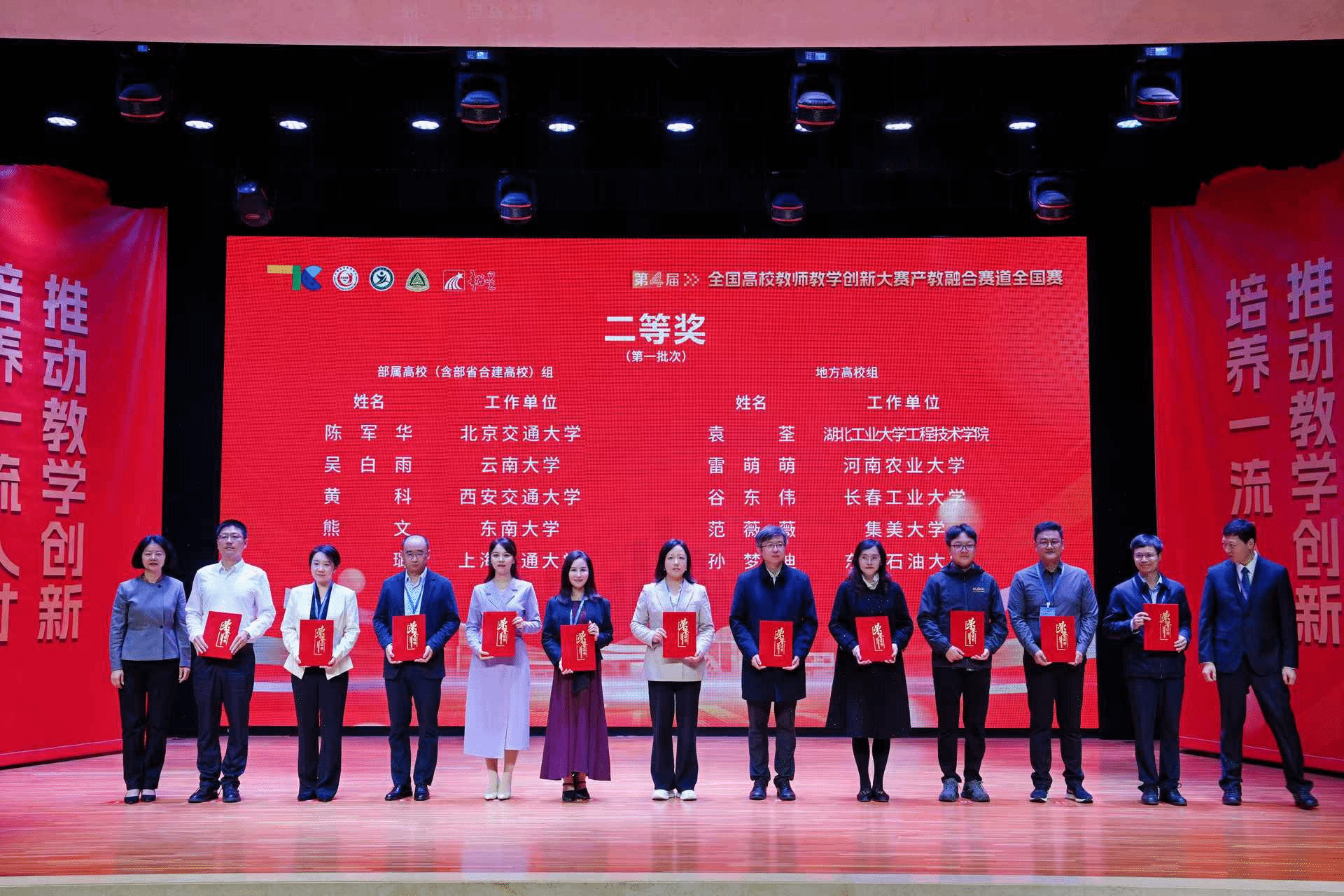 全国高校教师教学创新大赛是唯一一项纳入教育部“三评一竞赛”中面向各学科、各专业、各职称的高校教师教学大赛,与全国青年教师教学竞赛一并为目前影响力最大、最权威的高校教师教学赛事。本届大赛于2023年11月启动,产教融合赛道是首次纳入本赛事,共有来自全国的81门课程团队318位教师参加现场比赛,经专家评审,共有12个教师(团队)获一等奖、28个教师(团队)获二等奖、41个教师(团队)获三等奖。