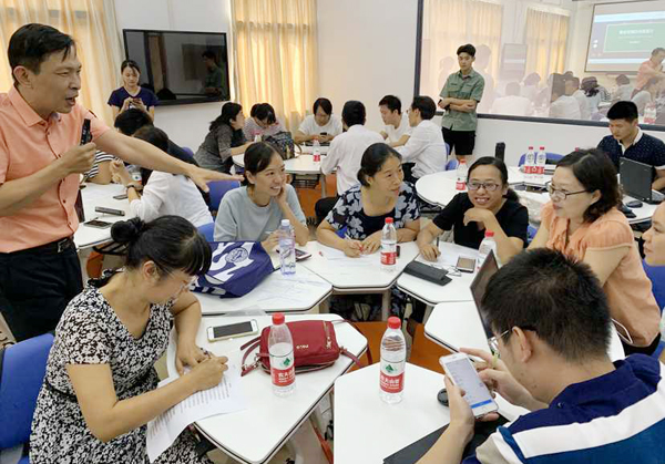 华侨大学游国龙教授应邀授课,采用全程观摩体验课的方式让参加的老师们以学生的身份亲身领略线上线下混合式课程的“课前、课中、课后”的教学全过程。游国龙充分演示了“签到、投票、小组讨论、线上视频、抢答”等环节,课堂气氛十分活跃,我校老师们反响热烈。