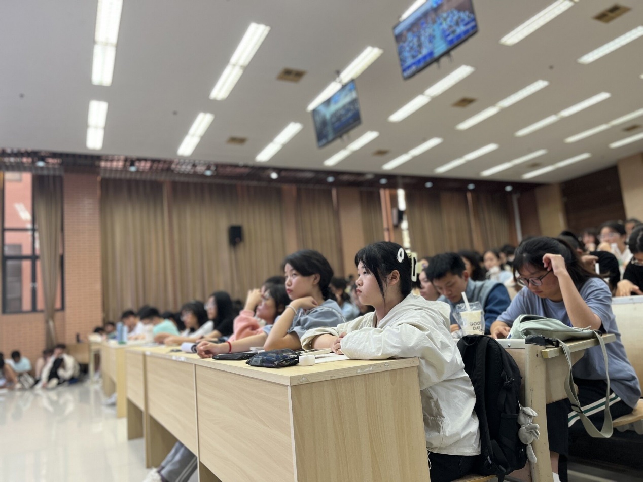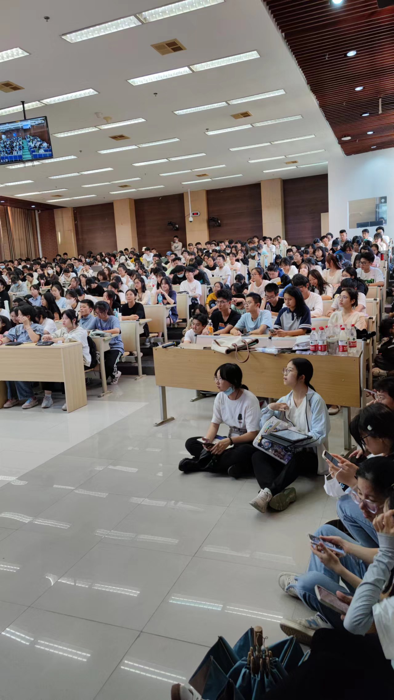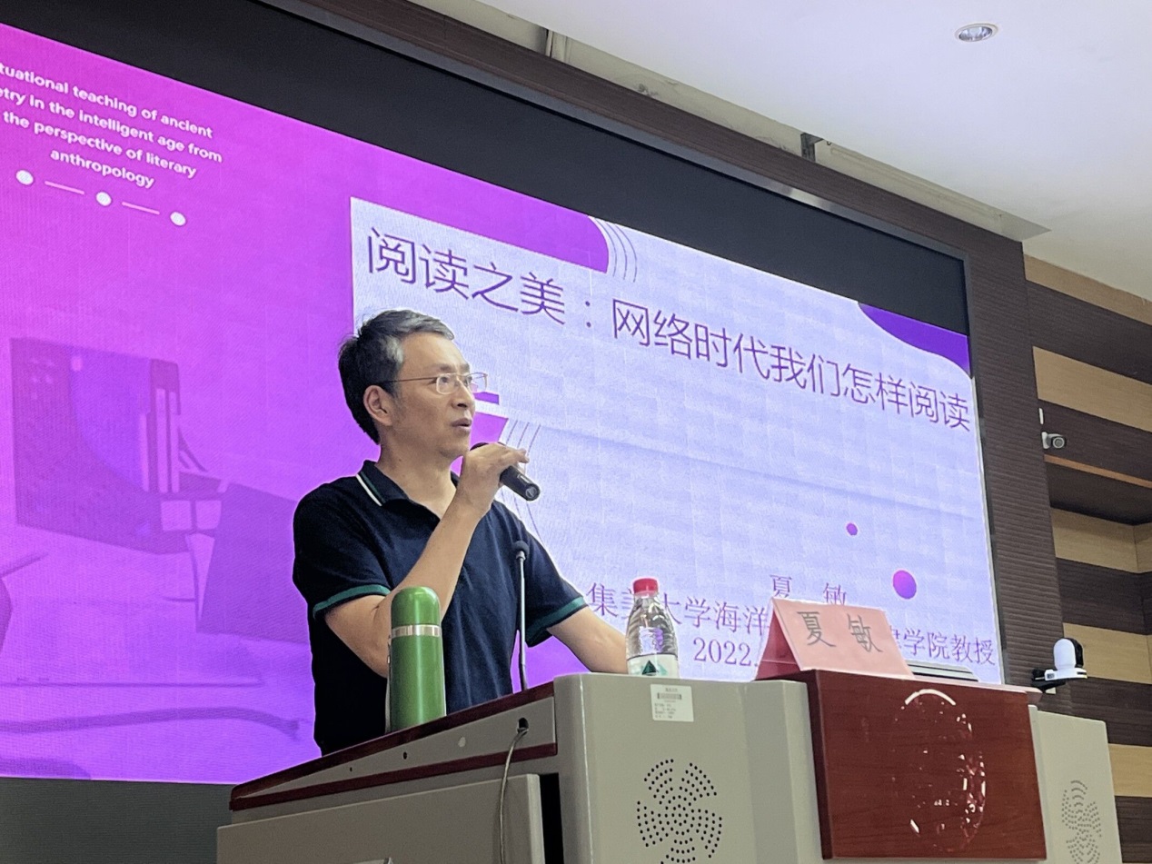 11月9日下午,福建省民间文艺家协会副主席,厦门作家协会副主席,我校海洋文化与法律学院夏敏教授为我校师生开展了一场名为《阅读之美:网络时代怎样阅读?》的讲座。讲座由教务处处长李雪主持。本次讲座采用跨校区直播形式进行,1000多名学生参与,主会场建发0211和分会场新师0212、文津0101教室均座无虚席,受到广大师生的热烈响应。教务处李雪处长带领着学生就着台阶席地而坐,教务处多位老师也到场参与,认真聆听的场景更是令人动容。