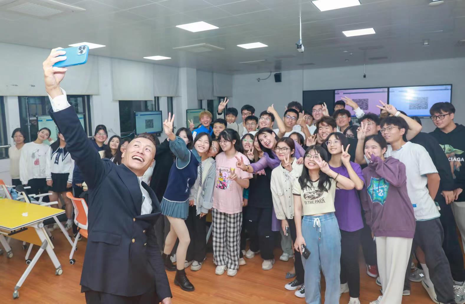 讲座结束后,亲切的“侯哥”不仅与主会场的同学们热情互动,还前往建发楼分会场、建发楼前与同学们见面合影。一张张合照和自拍,留住了讲座的盛况,见证了奥运精神的传承。