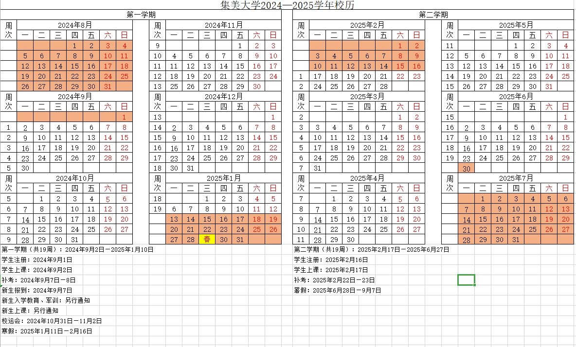 集美大学2024-2025学年校历